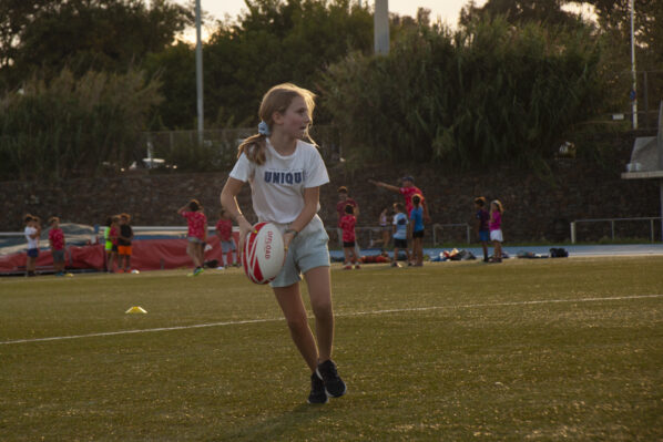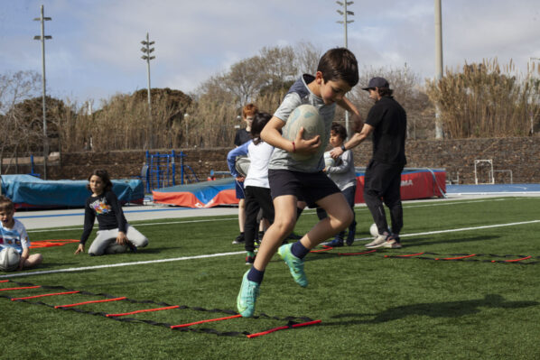 - Escola de Rugby (Sub-6, Sub-8, Sub-10, Sub-12) → En aquesta etapa s’introdueix el rugby de manera lúdica i progressiva, amb jocs i exercicis adaptats perquè els infants desenvolupin la coordinació, l’agilitat i el treball en equip.